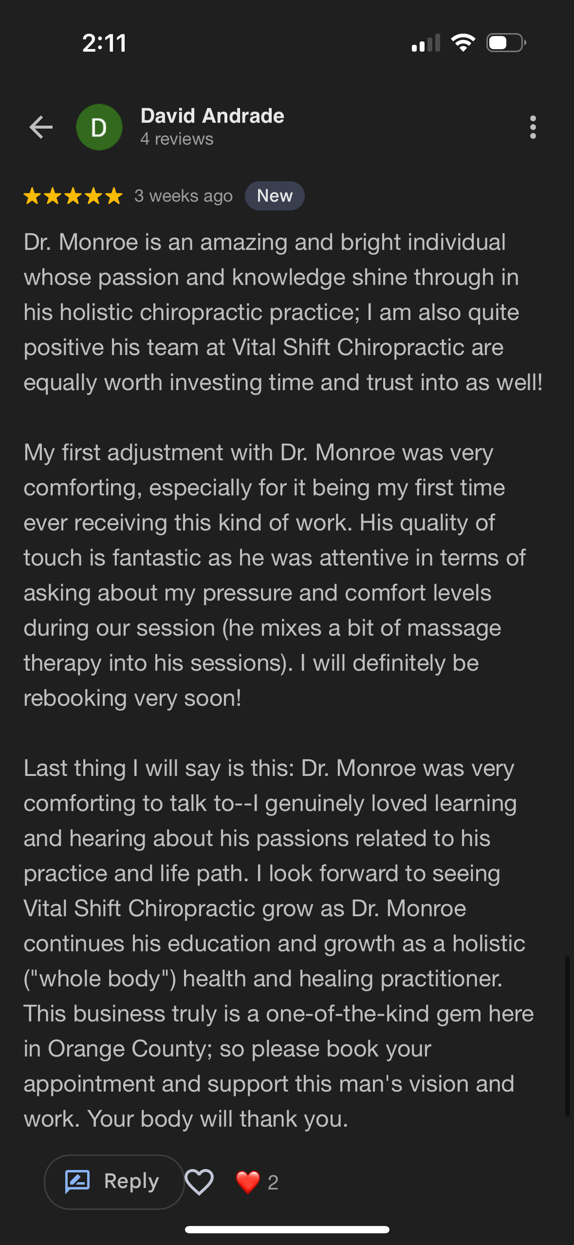 Peace and Welcome to Vital Shift Chiropractic. I am Dr. Quincy Monroe, a chiropractor and massage therapist in Orange County California. I provide personalized chiropractic services, DOT Physicals therapeutic massages and functional wellness tests to patients in Fullerton, Santa Ana, Irvine, Garden Grove, Anaheim, La Habra and throughout Orange County, CA.